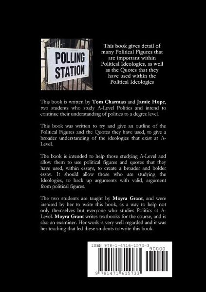 This book, gives in depth detail for those studying A-Level Politics and more precisely the Ideologies. It is designed to help students studying the course, to remember the different political figures and quotes that exist, to try and give them a much more full essay when writing exams. It allows them to use political examples to back up arguments within an essay. It can also be used at degree level, as it is knowledge that tends to be forgotten.