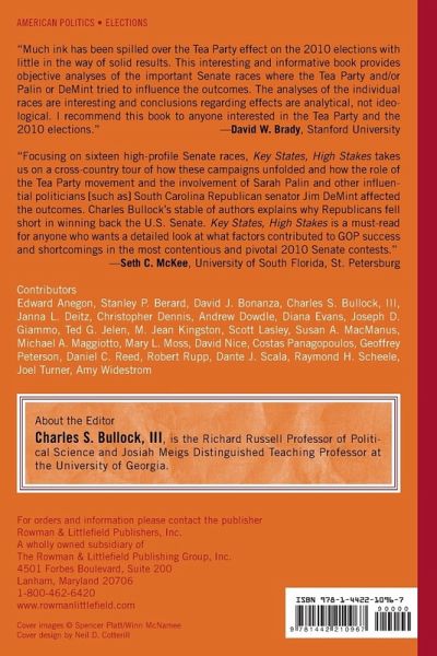 In this new edited volume, Charles S. Bullock III collects original contributions from top political scientists to evaluate Sarah Palin and the Tea Party's role in the 2010 midterm elections. Key States, High Stakes focuses on states where Republicans had the chance to pick up Senate seats, as well as examining GOP Senate primaries if they involved a Palin or a Tea Party nominee facing an establishment favorite. Bullock concludes the anthology with a chapter on the legacy of the Tea Party and of Sarah Palin on American politics.