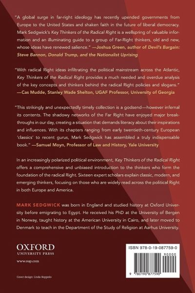 In an increasingly polarized political environment, Key Thinkers of the Radical Right offers a comprehensive and unbiased introduction to the thinkers who form the foundation of the radical right. Sixteen expert scholars explain sixteen classic, modern, and emerging thinkers, focusing on thinkers who are widely read across the political right in both Europe and America.