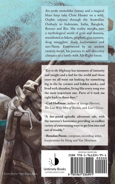 An erotic motorbike fantasy and a magical blues harp take Chris Hunter on a wild, Orphic odyssey through the Australian Outback to Indonesia, India, Bangkok, Borneo and Rio. His reality morphs into a mythological world of gods and demons, manifested as bikers, prophets, gun runners, drug smugglers, shady businessmen and neo-Nazis. Empowered by an ancient esoteric secret, his journey to self discovery climaxes in a battle with Alt-Right forces.