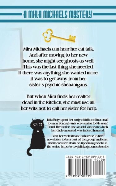 Mira Michaels can hear her cat talk. And after moving to her new home, she might see ghosts as well. This was the last thing she needed. If there was anything she wanted more, it was to get away from her sister's psychic shenanigans. But when Mira finds her realtor dead in the kitchen, she must use all her wits not to call her sister for help. Mira's decision to team up with the local diner owner to find the killer proves that her new town has more secrets than her cat has lives. When the clues take a surprising turn, Mira may ruin her chances at friendship. Or she might end up six feet under.