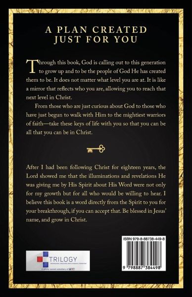 A PLAN CREATED JUST FOR YOU Through this book, God is calling out to this generation to grow up and to be the people of God He has created them to be. It does not matter what level you are at. It is like a mirror that reflects who you are, allowing you to reach that next level in Christ. From those who are just curious about God to those who have just begun to walk with Him to the mightiest warriors of faith-take these keys of life with you so that you can be all that you can be in Christ.¿