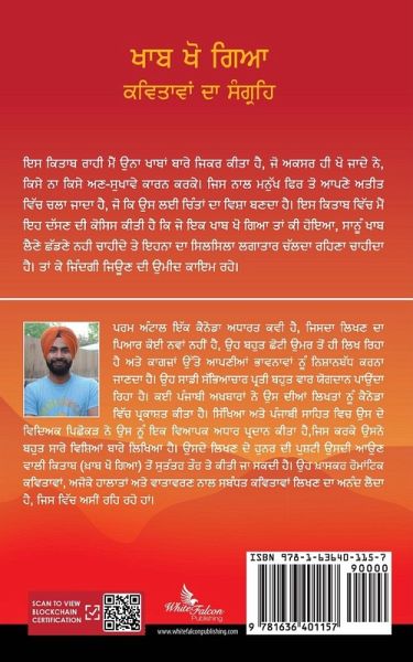 ਇਸ ਕਿਤਾਬ ਰਾਹੀ ਮੈਂ ਉਨਾ ਖਾਬਾਂ ਬਾਰੇ ਜਿਕਰ ਕੀਤਾ ਹੈ, ਜੋ ਅਕਸਰ ਹੀ ਖੋ ਜਾਦੇ ਨੇ, ਕਿਸੇ ਨਾ ਕਿਸੇ ਅਣ-ਸੁਖਾਵੇ ਕਾਰਨ ਕਰਕੇ। ਜਿਸ ਨਾਲ ਮਨੁੱਖ ਫਿਰ ਤੋ ਆਪਣੇ ਅਤੀਤ ਵਿੱਚ ਚਲਾ ਜਾਦਾ ਹੈ, ਜੋ ਕਿ ਉਸ ਲਈ ਚਿੰਤਾਂ ਦਾ ਵਿਸ਼ਾ ਬਣਦਾ ਹੈ। ਇਸ ਕਿਤਾਬ ਵਿੱਚ ਮੈਂ ਇਹ ਦੱਸਣ ਦੀ ਕੋਸਿਸ ਕੀਤੀ ਹੈ ਕਿ ਜੇ ਇਕ ਖਾਬ ਖੋ ਗਿਆ ਤਾਂ ਕੀ ਹੋਇਆ, ਸਾਨੂੰ ਖਾਬ ਲੈਣੇ ਛੱਡਣੇ ਨਹੀ ਚਾਹੀਦੇ ਤੇ ਇਹਨਾ ਦਾ ਸਿਲਸਿਲਾ ਲਗਾਤਾਰ ਚੱਲਦਾ ਰਹਿਣਾ ਚਾਹੀਦਾ ਹੈ। ਤਾਂ ਕੇ ਜਿੰਦਗੀ ਜਿਊਣ ਦੀ ਉਮੀਦ ਕਾਇਮ ਰਹੇ।