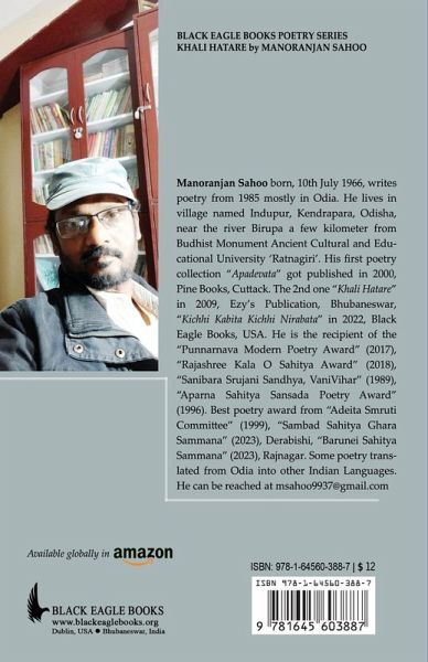Manoranjan Sahoo born, 10th July 1966, writes poetry from 1985 mostly in Odia. He lives in village named Indupur, Kendrapara, Odisha, near the river Birupa a few kilometer from Budhist Monument Ancient Cultural and Educational University 'Ratnagiri'. His first poetry collection "Apadevata" got published in 2000, Pine Books, Cuttack. The 2nd one "Khali Hatare" in 2009, Ezy's Publication, Bhubaneswar, "Kichhi Kabita Kichhi Nirabata" in 2022, Black Eagle Books, USA. He is the recipient of the "Punnarnava Modern Poetry Award" (2017), "Rajashree Kala O Sahitya Award" (2018), "Sanibara Srujani Sandhya, VaniVihar" (1989), "Aparna Sahitya Sansada Poetry Award" (1996). Best poetry award from "Adeita Smruti Committee" (1999), "Sambad Sahitya Ghara Sammana" (2023), Derabishi, "Barunei Sahitya Sammana" (2023), Rajnagar. Some poetry translated from Odia into other Indian Languages. He can be reached at msahoo9937@gmail.com