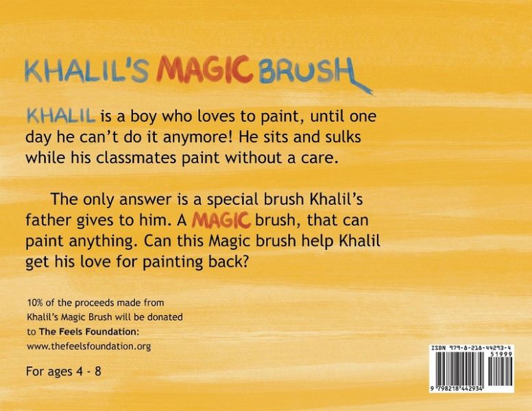 Can a Magic brush help Khalil get his love for painting back? Khalil is a young boy who loves to paint. Until one day he can't do it anymore because he believes his classmates are all much better at it than he is. He comes home to his concerned father, an established painter with a trick for helping his son paint again. Khalil's father shows him a magic brush his own father had given to him, that will help Khalil paint again if he follows some important steps. Khalil's Magic Brush, written and illustrated by Aisling Herron, has well crafted text that is simple for early readers and enjoyable for parents. The world our young artist inhabits is a colorful and cozy, filled with possibility. This tender story between a father and son is full of wisdom, compassion, magic and humor. This is an ideal book for introducing children to art, self esteem and how to grapple with comparison. This book encourages children to find the magic spark that makes them artist and share it with the world. A great gift for budding artists on birthdays, holidays, and celebrations. A portion of all proceeds made from Khalil's Magic Brush will be donated to Unified Outreach. www.unified-outreach.com