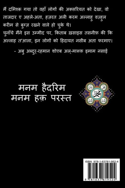 Yun to har daur me hi Maula Ali Alaihesalam ki fazilaton ko dabaane ki koshishen ki gayi hain aur aaj bhi Kharziyon aur Nasbiyon ki koshish ye hi rahti hai ki Zikar E Ahle Bait ko mitaya ja sake, Halanki ye mumkin nahi. Ham kitaab me Maine Imaam Nasaai Rahmatullah Aaleh ki kitaab Khasais E Ali Alaihesalam ko aasan hindi bhasha me likhne ki koshish ki hai. Ummid hai ki Aap sabko is kitaab ke zariye Fazilat E Ahle Bait samjhne me aasani hogi. - Syed Shadab Ali