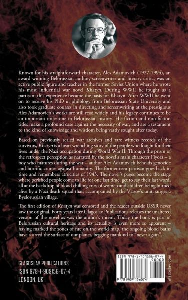 It is a quiet place, with lush green grass covering the location of the former Belarusian village. A village that was burned to the ground with its inhabitants in 1943. Anyone familiar with this small corner of Eastern Europe is chilled to the bone by the events that transpired there, and the village's name Khatyn has now come to embody a horrific national tragedy. But tragedy is not all this name embodies, for it also reminds people of the tremendous courage of those who fought for the life and freedom of their country. It is the story of this village and the events that surround its annihilation that are the focus of Ales Adamovich's novel Khatyn, which was written on the basis of historical documents. The author, himself a World War II veteran and partisan, depicts the reality of the partisan resistance to fascism in Belarus. The main character is a man named Florian, who in his memories returns to events that transpired some thirty years ago, when as a teenager he joined a partisan unit and met his future wife, Glasha. He witnesses how the villagers of Khatyn are burned alive as reprisal for supporting the partisan movement. The monstrous cruelty of the death squad and its commanders manifested itself in the act of punishing the entire community for the deeds of those who had helped the partisans. The village, composed mostly of the elderly and mothers with children, was locked inside a barn. After being covered with dry hay, the barn was set ablaze with the families inside. Over half a century later, Adamovich's story about the courage of ordinary people has not lost its immediacy. Today, the world is still marred by war crimes committed against communities of noncombatant. Khatyn is a testament to an event that must not be forgotten, and to a reality that must not be repeated.