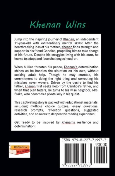 Dive into the inspiring journey of Khenan, an independent 11-year-old with extraordinary mental skills! After the heartbreaking loss of his mother, Khenan finds strength and support in his friend Candice, propelling him to take charge of his future. Despite his struggles living with his aunt, he learns to adapt and face challenges head-on. When bullies threaten his peace, Khenan's determination shines as he handles the situation on his own, without seeking adult help. Though he may stumble, his commitment to doing the right thing and correcting his mistakes never wavers. Driven by the desire to find his father, Khenan first seeks help from Candice's father, and when that plan falters, he turns to his wise neighbor, Mrs. Blake, who becomes a pivotal ally in his quest. This captivating story is packed with educational materials, including multiple choice quizzes, essay questions, research prompts, reflection questions, suggested activities, and answers to deepen the reading experience. Get ready to be inspired by Khenan's resilience and determination!