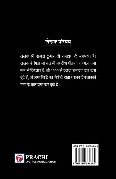 Author Shri Rajeev Kumar is a great devotee of Ramayana. The author's father, Saint Shri Jagdish Gautam, is famous by the name Jaimangala Baba, who has performed more than 1000 Ramayana Yagya, who has received the fruits of Aswar Din Janaki Mata, the giver of Ashta Siddhi Nav Nidhi.
