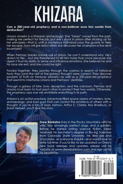 Can a 200-year-old prophecy and a non-believer save two worlds from destruction? Linsora Anselm is a Khizaran archeologist. She "hears" voices from the past, making her perfect for the job, but she's stuck in prison after sticking up for her principles-that is, until a mysterious individual pays the guards to help her escape. How will she react when she discovers her champion is the devil incarnate? When Permac breaks Linsora out of prison, he can't understand why. He's drawn to her... but she threatened to kill him more than once because she doesn't trust his ability to sense and influence emotions. She believes he and his race are evil, and she could be right. Forced together, they journey through the cosmos in search of historical facts they (and the rest of the galaxy) thought were correct. They discover pockets of truth on faraway planets-as well as a 200-year-old prophecy that seems to intertwine Linsora and Permacs' destinies. Through a galaxy of fate, love, deception, and the unknown, Permac and Linsora must learn to trust each other to protect their two worlds. Otherwise, the prophecy says war will annihilate everything in its path. Khizara is an action-packed, adventure-filled space opera of mystery, love, archaeology, and bad guys that can control the emotions of others with a thought. If you're a fan of Issac Asimov, Arthur C. Clarke, Ray Bradbury, or Frank Herbert, you'll love this story.