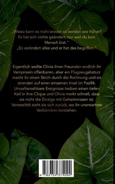 Eigentlich wollte Olivia ihren Freunden endlich ihr Vampirsein offenbaren, aber ein Flugzeugabsturz macht ihr einen Strich durch die Rechnung und sie stranden auf einer einsamen Insel im Pazifik. Unvorhersehbare Ereignisse führen zum Tod einer Freundin, was einen tiefen Keil in ihre Clique treibt. Schnell merkt Olivia durch den Verrat eines Freunds, dass sie nicht die Einzige mit Geheimnissen ist. Verzweifelt zieht sie sich zurück, wo ihr unerwartete Verbündete beistehen.
