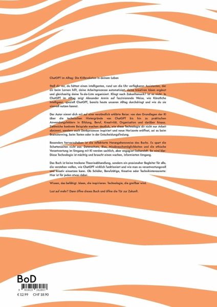 ChatGPT im Alltag: Die KI-Revolution in deinem Leben Stell dir vor, du hättest einen intelligenten, rund um die Uhr verfügbaren Assistenten, der dir beim Lernen hilft, deine Arbeitsprozesse automatisiert, deine kreativen Ideen ergänzt und gleichzeitig deine To-do-Liste organisiert. Klingt nach Zukunftsmusik? Ist es nicht. In ChatGPT im Alltag zeigt Alexander Armin auf faszinierende Weise, wie Künstliche Intelligenz, speziell ChatGPT, bereits heute unseren Alltag durchdringt und wie du sie sinnvoll nutzen kannst. Der Autor nimmt dich mit auf eine verständlich erklärte Reise: von den Grundlagen der KI über die technischen Hintergründe von ChatGPT bis hin zu praktischen Anwendungsfeldern in Bildung, Beruf, Kreativität, Organisation und darüber hinaus. Zahlreiche konkrete Beispiele machen deutlich, wie diese Technologie dir nicht nur Arbeit abnimmt, sondern auch Denkprozesse inspiriert und neue Horizonte eröffnet, sei es beim Brainstorming, beim Texten oder in der Entscheidungsfindung. Besonders hervorzuheben ist die reflektierte Herangehensweise des Buchs. Es spart die Schattenseiten nicht aus: Datenschutz, Bias, Missbrauchsmöglichkeiten und die ethische Verantwortung im Umgang mit KI werden sachlich, aber engagiert behandelt. So wird klar: Diese Technologie ist mächtig und braucht einen wachen, informierten Umgang. Das Buch ist keine trockene Theorieabhandlung, sondern ein praxisnaher Begleiter für alle, die verstehen wollen, wie ChatGPT wirklich funktioniert und wie man es verantwortungsvoll und kreativ einsetzen kann. Ob Schüler, Berufstätige, Kreative oder Technikinteressierte: Hier ist für jeden etwas dabei. Wissen, das befähigt. Ideen, die inspirieren. Technologie, die greifbar wird. Lust auf mehr? Dann öffne dieses Buch und öffne die Tür zur Zukunft.