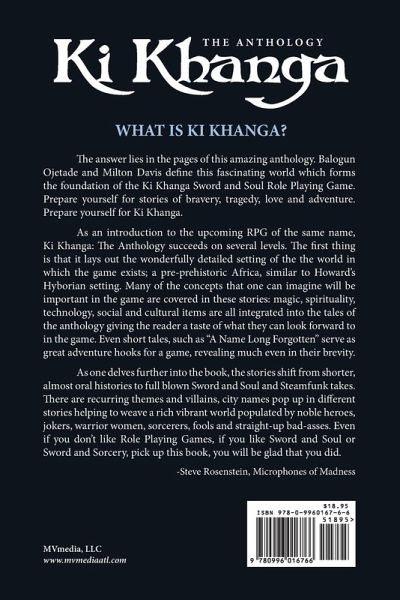 What is Ki Khanga? The answer lies in the pages of this amazing anthology. Balogun Ojetade and Milton Davis define this fascinating world which forms the foundation of the Ki Khanga Sword and Soul Role Playing Game. Fifteen amazing stories will take you on an exciting journey throughout is intriguing world. Prepare yourself for stories of bravery, tragedy, love and adventure. Prepare yourself for Ki Khanga.
