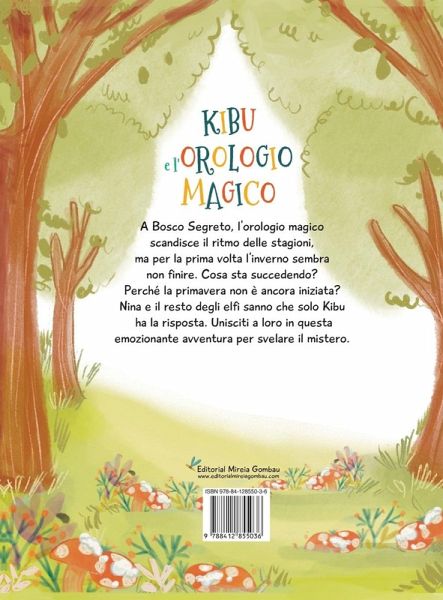 A Bosco Segreto, l'orologio magico scandisce il ritmo delle stagioni, ma per la prima volta l'inverno sembra non finire. Cosa sta succedendo? Perché la primavera non è ancora iniziata? Nina e il resto degli elfi sanno che solo Kibu ha la risposta. Unisciti a loro in questa emozionante avventura per svelare il mistero. Kibu e l'orologio magico è una storia piena di magia e fantasia, con grandi valori come l'amicizia, il lavoro di squadra, lo sforzo e la responsabilità. Attraverso un viaggio sulle diverse stagioni dell'anno, questa storia aiuterà i bambini a capire che lavorando insieme tutto diventa più facile e divertente e che insieme si possono raggiungere grandi obiettivi.