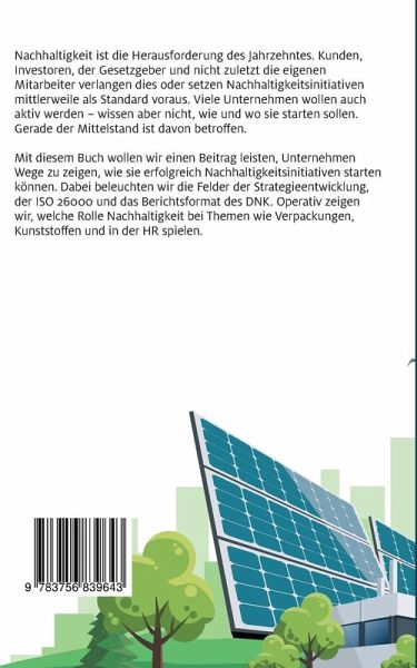 Nachhaltigkeit ist die Herausforderung des Jahrzehntes. Kunden, Investoren, der Gesetzgeber und nicht zuletzt die eigenen Mitarbeiter verlangen dies oder setzen Nachhaltigkeitsinitiativen mittlerweile als Standard voraus. Viele Unternehmen wollen auch aktiv werden, wissen aber nicht, wie und wo sie starten sollen. Gerade der Mittelstand ist davon betroffen. Mit diesem Buch wollen wir einen Beitrag leisten, Unternehmen Wege zu zeigen, wie sie erfolgreich Nachhaltigkeitsinitiativen starten können. Dabei beleuchten wir die Felder der Strategieentwicklung, der ISO 26000 und das Berichtsformat des DNK. Operativ zeigen wir, welche Rolle Nachhaltigkeit bei Themen wie Verpackungen, Kunststoffen und in der HR spielen.
