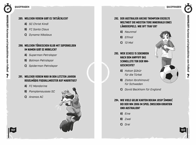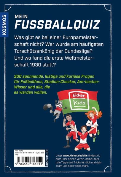 Das Buch „Mein Fußballquiz – 300 Fragen für echte Fußballfans“ aus der Reihe Kicker Kids verbindet Quizfragen mit Fußballwissen für junge Leserinnen und Leser. Insgesamt enthält es 300 Multiple-Choice-Fragen zu verschiedenen Themen rund um den Fußball. Das