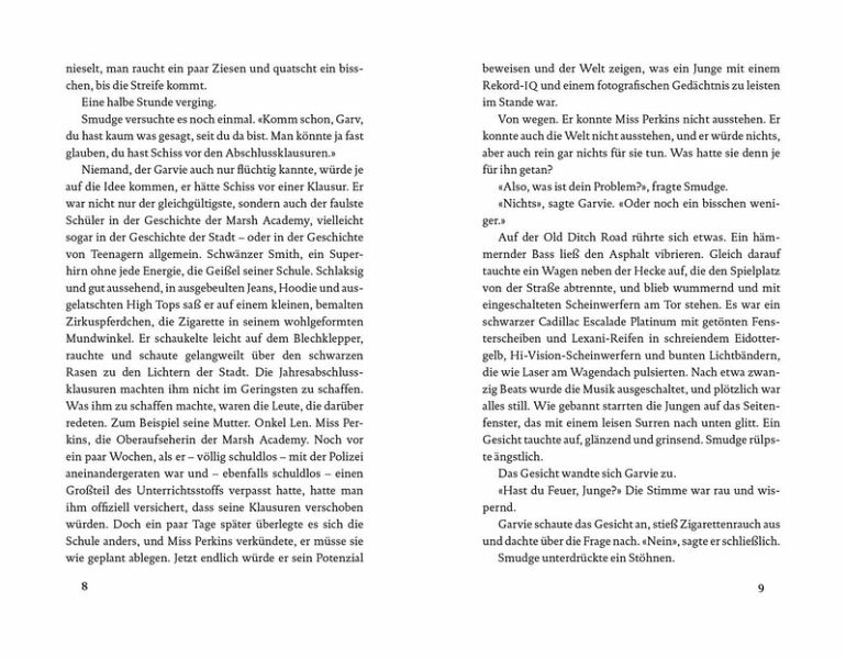 Die Abschlussklausuren stehen bevor, aber Five Mile steht unter Schock. Ein Schüler wurde auf dem Schulgelände erschossen aufgefunden und kein Motiv weit und breit. Garvie Smith - moralisch verkommen, stinkfaul, aber leider genial - wollte sich gerade dazu durchringen, ein bisschen für die Klausuren zu lernen. Aber es ist ja nicht mit anzusehen, wie dumm sich Kommissar Singh wieder mal anstellt. Garvie ist der Einzige, der weiß, wo man suchen muss - zum Beispiel bei der Exfreundin seines besten Freundes. Klausuren? Welche Klausuren?