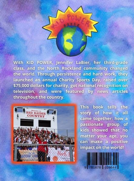 With KID POWER, Jennifer LaBier, her third-grade class, and the North Rockland community changed the world. Through persistence and hard work, they launched an annual Charity Sports Day, raised over $75,000 dollars for charity, got national recognition on television, and were featured by news articles throughout the country. This book tells the story of how it all came together: how a passionate group of kids showed that no matter your age, you can make a positive impact on the world!