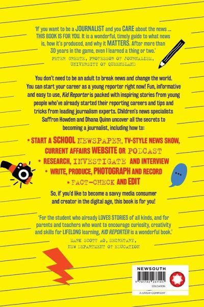 You don't need to be an adult to break news and change the world. You can start your career as a young reporter right now. In Kid Reporter you'll learn how to: ¿ research, investigate and interview ¿ write, produce, photograph and record ¿ fact-check and edit ¿ start a school newspaper, create a TV-style news show, or a current affairs website or podcast. Kid Reporter will also help you navigate the daily deluge of media, information and 'fake news' and grasp the tools to become a responsible creator yourself. Packed with inspiring stories from young people who've already started their reporting careers, and tips from some of Australia's and the world's leading journalism experts, this fun, easy-to-use guide gives kids the scoop on how to become a junior journalist. Teachers' Notes available here