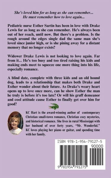 She's loved him for as long as she can remember... He must remember how to love again... Pediatric nurse Esther Sartin has been in love with Drake Lewis for as long as she can remember. He's always been out of her reach, until now. But there's a problem. Is the rough around the edges single dad the same man she's loved since junior high, or is she pining away for a distant memory that no longer exists? Widower Drake Lewis is not looking to love again. Far from it... He's too busy and too tired raising his kids and making ends meet to squeeze one more thing into his life, especially romance. A blind date, complete with three kids and an old hound dog, leads to a relationship that makes both Drake and Esther wonder about their future. As Drake's weary heart opens up to love once more, can he show Esther the man he truly is before it's too late? Or will his gruff demeanor and cool attitude cause Esther to finally get over him for good?