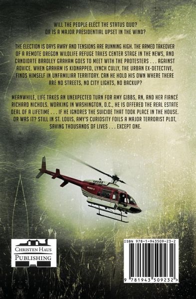 Will the people elect the status quo? Or is a major presidential upset in the wind? The election is days away and tensions are running high. The armed takeover of a remote Oregon wildlife refuge takes center stage in the news, and candidate Bradley Graham goes to meet with the protesters . . . against advice. When Graham is kidnapped, Lynch Cully, the urban ex-detective, finds himself in unfamiliar territory. Can he hold his own where there are no streets, no city lights, no backup? Meanwhile, life takes an unexpected turn for Amy Gibbs, RN, and her fiancé Richard Nichols. Working in Washington, D.C., he is offered the real estate deal of a lifetime . . . if he ignores the suicide that took place in the house. Or was it? Still in St. Louis, Amy's curiosity foils a major terrorist plot, saving thousands of lives . . . except one.