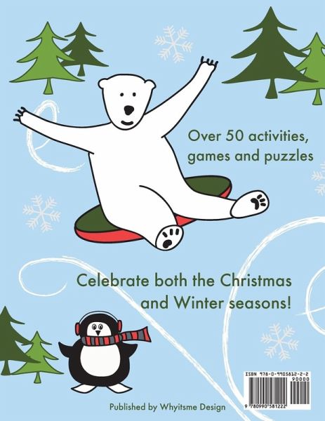 This Christmas activity book is the perfect Christmas stocking stuffer. It is 8.5x11 inches (216 x 279 mm) and is packed with 50 games and puzzles surrounding Christmas and Winter. You'll find secret codes, coloring pages, word searches, mazes, dot to dots and more. This puzzle book is fun entertainment for the kids and let's the creative juices flow. Cute elf building snowman and sledding polar bear on the cover.