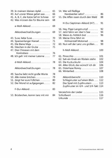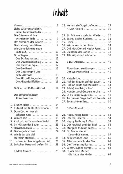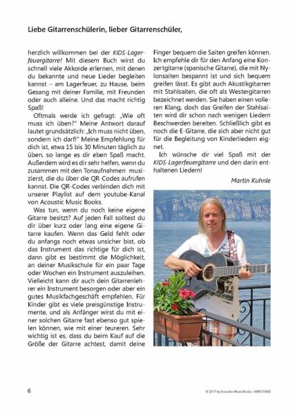 Mit QR-Codes zum Streamen der Tonaufnahmen der meisten Lieder. Dieses Lehrbuch ist ideal geeignet für den Einsatz im Musikunterricht in Musikschulen. Mit der KIDS-Lagerfeuergitarre lernen die jungen Gitarristen Schritt für Schritt und mit kontinuierlichem Aufbau, die schönsten Kinderlieder - alt vertraute, aber auch aktuelle - oft nur mit zwei oder drei Akkorden zu begleiten. Dabei brauchen Sie keine Noten, sondern spielen nach Griffbildern und Akkordsymbolen. Trotzdem werden nach und nach die wichtigsten Akkorde wie G, D, Am, A, E, Em, C sowie Schlag- und Zupfmuster erlernt. Die Melodien sind auch in Noten dargestellt, so dass gemeinsam gesungen oder zusammen mit anderen Instrumenten musiziert werden kann. Die Anfangs leicht spielbare Stücke sorgen für das notwendige Erfolgserlebnis und Schritt für Schritt steigert sich der Schwierigkeitsgrad. Dieses Unterrichtswerk ist zudem optimal geeignet zum Einsatz in Kindertagesstätten oder als Lehrbuch für Erzieher/innen. Eine Kinderlieder-Sammlung, die einfach nur Spaß macht!Inhalt: Alle meine Entchen - Alle Vögel sind schon da - Auf der Mauer, auf der Lauer - Bruder Jakob - Der Kuckuck und der Esel - Der Löwe schläft heut' Nacht - Der Mond ist aufgegangen - Die Affen rasen durch den Wald - Die Biene Maja - Die Reise der Sonne - Die Tiroler sind lustig - Die Vogelhochzeit - Ein Männlein steht im Walde - Ein Mann, der sich Kolumbusnannt - Es tanzt ein Bi-B-Butzemann - Hab ne Tante aus Marokko - Happy Birthday to You - Hatschi-Lied - Heidi - Hundertzwei Gespensterchen - Kein schöner Land - Kommt ein Vogel geflogen - Kuckuck, ruft's aus dem Wald - Laterne, Laterne - Meine Oma fährt im Hu?hnerstall Motorrad - Morgens früh um sechs - O, du lieber Augustin - Old Mac Donald Had a Farm - Pinocchio - Pippi Langstrumpf - Schlaf, Kindlein, schlaf - So a schöner Tag - Summ, summ, summ - Suse, liebe Suse - Was mu?ssen das für Bäume sein - Weißt du, wie viel Sternlein stehen? - Wer will fleißige Handwerker sehn? - Winter adeu.v.m.