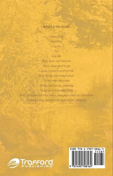 What's in this book? Adventure Exploring Country Fun Surprise Birds, bats and beaver Lions, dogs and bugs Caves, caverns and tunnels Real things and imagination Cricks, rivers and lake Riding, swooping, swimming Slipping, sliding and flying And, of course the four very courageous kids of adventure And exploring are here for everyone's pleasure.