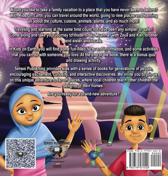 "My kids and I have been following this series for years and we love it. We didn't know there was a way for adults and kids to learn and bond together until now - thanks to Kids On Earth my kids and I are excited to read together 5 Stars!" - Amanda E Welcome to Egypt! Egypt is known as an Ancient Civilization, and this is because Egypt has been around for nearly 5,000 years. Follow along with Asim and I as we take you on a journey to one of the greatest places in the world and learn about both modern and ancient Egypt. Are you ready? Let's Go! Embark on a Global Adventure With the Kids on Earth Book Series! Ready to inspire curiosity and compassion in your kids? Dive into the Kids on Earth Book Series, where children aged 6-12 can explore countries and cultures around the world through an incredible fusion of multiculturalism and antiracism. This isn't just another non-fiction series-it's an immersive learning adventure like no other! Let two local kids from each country be your family's tour guides as they share their fascinating lives, showcasing cultural traditions, delicious cuisines, unique clothing, vibrant histories, thriving economies, beautiful landscapes, amazing wildlife, and more. Imagine taking a family trip to a country you've never been to-without leaving your home! Through this one-of-a-kind series, your family will learn to appreciate the incredible diversity of people, cultures, and nature across the globe while forging connections that celebrate unity and understanding. Don't wait-start your unforgettable journey today and open the door to adventure, discovery, and a newfound love for the world around us. Give your kids an experience they'll cherish, and let the Kids on Earth series show them the magic of our world!