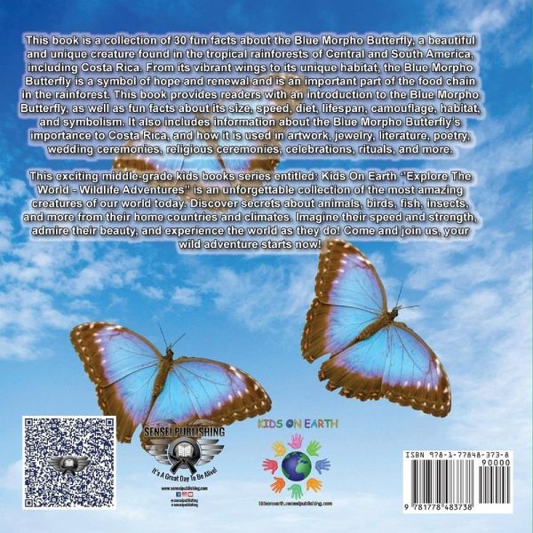 This book is a collection of 30 fun facts about the Blue Morpho Butterfly, a beautiful and unique creature found in the tropical rainforests of Central and South America, including Costa Rica. From its vibrant wings to its unique habitat, the Blue Morpho Butterfly is a symbol of hope and renewal and is an important part of the food chain in the rainforest. This book provides readers with an introduction to the Blue Morpho Butterfly, as well as fun facts about its size, speed, diet, lifespan, camouflage, habitat, and symbolism. It also includes information about the Blue Morpho Butterfly's importance to Costa Rica, and how it is used in artwork, jewelry, literature, poetry, wedding ceremonies, religious ceremonies, celebrations, rituals, and more.