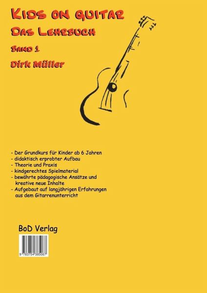 Kids on guitar - Das Lehrbuch ist der Grundkurs für alle jungen Gitarristinnen und Gitarristen ab 6 Jahren. Hier werden alle notwendigen theoretischen und praktischen Grundlagen vermittelt die notwendig sind um erfolgreich zu Lernen. Dieses Buch ist in angemessener Zeit zu bewältigen und damit ist schon bald ein erster großer Erfolg sichtbar. Dies ist besonders wichtig für die Motivation in der Zukunft. Mit kindgerechten Übungsliedern macht das Lernen viel Spaß. Kinderlieder, Kinderreime und bekannte Stücke machen Lust auf mehr. Der Aufbau des Lehrbuches ist über viele Jahre im Unterricht erprobt und entwickelt. Viele Schüler haben auf diesem Weg sehr erfolgreich das Gitarrespielen erlernt.