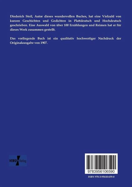 Diederich Steil, Autor dieses wundervollen Buches, hat eine Vielzahl von kurzen Geschichten und Gedichten in Plattdeutsch und Hochdeutsch geschrieben. Eine Auswahl von über 100 Erzählungen und Reimen hat er für dieses Werk zusammen gestellt.