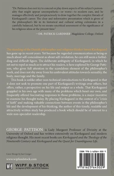The standing of the Danish philosopher and religious thinker Soren Kierkegaard has gone up in recent years. Yet because he regarded communication as being as much about self-concealment as about self-revelation, he can still seem a forbidding and difficult figure. The deliberate ambiguity of Kierkegaard, in which he set out to repel as much as to attract his readers, is here explored by George Pattison, who gives full attention to the scandalous element of the philosopher's work, and does not shy away from his ambivalent attitudes towards sexuality, the body, marriage, and the family. This book is unlike other nontechnical introductions to Kierkegaard in that it does not seek to promote one part of Kierkegaard's writings over others, but offers, rather, a perspective on his life and output as a whole. That Kierkegaard grappled in his own age with many of the problems which beset our own, and frequently offered fascinating responses to those problems, is a major incentive to examine his thought today. By placing Kierkegaard in the context of a ""crisis of faith"" and making valuable connections between events in the philosopher's life and the development of his thinking, the author of this timely, readable, and attractively written study has produced a book which should be of interest to a wide nonspecialist readership.