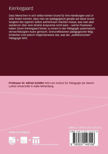 Dass Menschen in sich selbst keinen Grund für ihre Handlungen und Urteile finden können, dass man sie (pädagogisch) gerade auf diese Grundlosigkeit des eigenen Selbst aufmerksam machen müsse, was man aber wiederum über eine direkte Ansprache nicht kann - solche Positionen haben Sören Kierkegaard bisher zu einem in der Pädagogik systematisch vernachlässigten Autor gemacht. Grenzreflexionen pädagogischer Möglichkeiten sind jedoch möglicherweise das, was der 'aufklärerischen' Pädagogik fehlt.