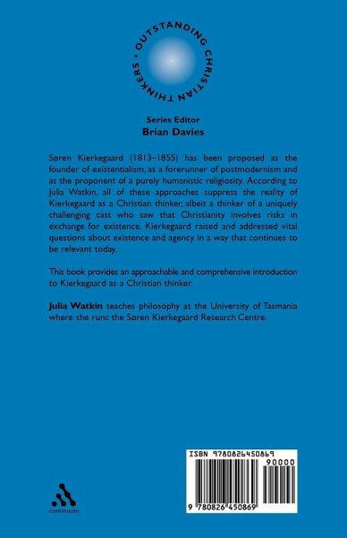 Soren Kierkegaard (1813-1855) has been proposed as the 'father' of existentialism, as a forerunner of post-modernism and as the proponent of a purely humanistic religiosity. According to Julia Watkin all of these approaches suppress the reality of Kierkegaard as a Christian thinker, albeit one of a uniquely challenging cast who saw the need to treat Christianity as a personal existential adventure in which one is not afraid to risk oneself. In Kierkegaard, Watkin uses Danish critical sources to classify the legendary thinker as one of a radical Christian persuasion.Kierkegaard raised and addressed vital philosophical and ethical-religious questions about existence in a way that continues to be relevant across disciplines, generations, and cultures. This book distinctly and simply introduces Kierkegaard to new readers as a Christian religious thinker.
