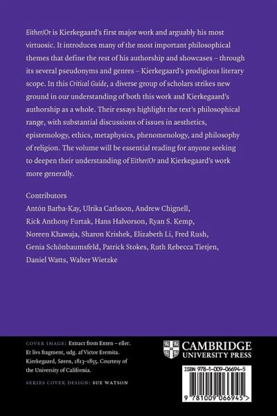 Either/Or is Kierkegaard's first major work and arguably his most virtuosic. This Critical Guide strikes new ground in our understanding of both the work and Kierkegaard's authorship as a whole, with substantial discussions of issues in aesthetics, epistemology, ethics, metaphysics, phenomenology, and philosophy of religion.