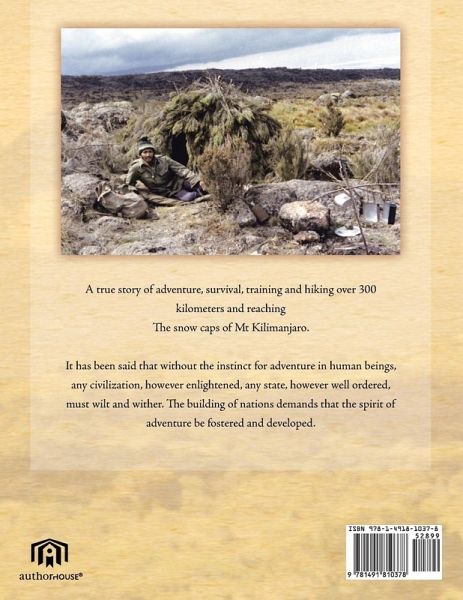 A true story of adventure, survival, training and hiking over 300 kilometers and reaching The snow caps of Mt Kilimanjaro. It has been said that without the instinct for adventure in human beings, any civilization, however enlightened, any state, however well ordered, must wilt and wither. The building of nations demands that the spirit of adventure be fostered and developed.