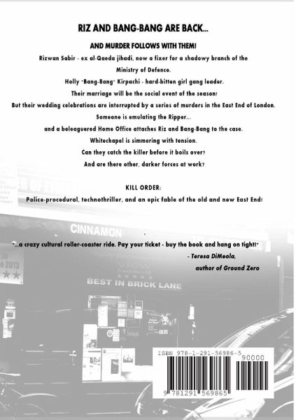 Rizwan Sabir is back. And this time the battle is personal. An ex al-Qaeda jihadi, Riz is now a fixer for a shadowy branch of the Ministry of Defence. He has teamed up professionally and romantically with Holly "Bang-Bang" Kirpachi - a hard-bitten girl gang leader. Their marriage was set to be the social event of the season. Until the wedding celebrations were interrupted by a series of murders in the East End of London. Someone is copying Jack the Ripper with a new spate of gruesome killings in Whitechapel. Riz and Bang-Bang are assigned to the case - but this is no easy mystery to crack. Can they catch the killer before he strikes again? Or are there other, darker forces at work? 'Kill Order' is an exciting police-procedural, techno-thriller that brings vividly to life both the new and the old East End. It is the third explosive instalment of the Riz Sabir series. Kill Order was originally published as 'Blood Honeymoon'.