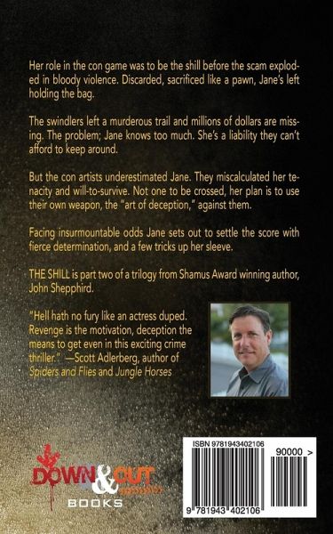 Her role in the con game was to be the shill before the scam exploded in bloody violence. Discarded, sacrificed like a pawn, Jane's left holding the bag. The swindlers left a murderous trail and millions of dollars are missing. The problem; Jane knows too much. She's a liability they can't afford to keep around. But the con artists underestimated Jane. They miscalculated her tenacity and will-to-survive. Not one to be crossed, her plan is to use their own weapon, the "art of deception," against them. Facing insurmountable odds Jane sets out to settle the score with fierce determination, and a few tricks up her sleeve. THE SHILL is part two of a trilogy from Shamus Award winning author, John Shepphird. "Hell hath no fury like an actress duped. Revenge is the motivation, deception the means to get even in this exciting crime thriller." -Scott Adlerberg, author of Spiders and Flies and Jungle Horses