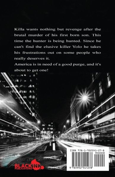 In book 3, Killa wants nothing but revenge after the brutal murder of his first born son. This time the hunter is being hunted. Since he can't find the elusive killer Yolo he takes his frustrations out on some people who really deserves it. America is in need of a good purge, and it's about to get one!