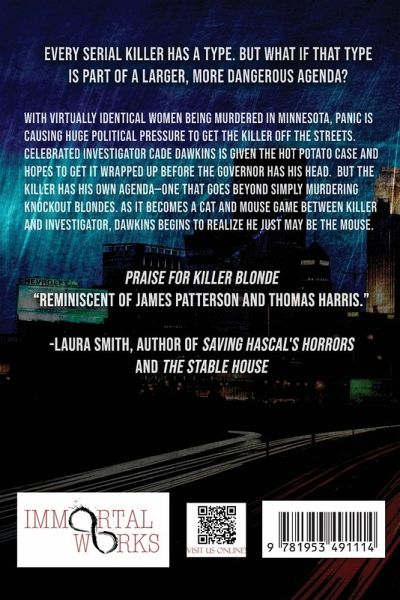 Every serial killer has a type. But what if that type is part of a larger, more dangerous agenda? With virtually identical women being murdered in Minnesota, panic is causing huge political pressure to get the killer off the streets. Celebrated investigator Cade Dawkins is given the hot potato case and hopes to get it wrapped up before the governor has his head. But the killer has his own agenda-one that goes beyond simply murdering knockout blondes. As it becomes a cat and mouse game between killer and investigator, Dawkins begins to realize he just may be the mouse.