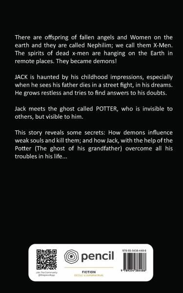 There are offspring of fallen angels and Women on the earth and they are called Nephilim; we call them X-Men. The spirits of dead x-men are hanging on the Earth in remote places. They became demons! JACK is haunted by his childhood impressions, especially when he sees his father dies in a street fight, in his dreams. He grows restless and tries to find answers to his doubts. Jack meets the ghost called POTTER, who is invisible to others, but visible to him. This story reveals some secrets: How demons influence weak souls and kill them; and how Jack, with the help of the Potter (The ghost of his grandfather) overcome all his troubles in his life...