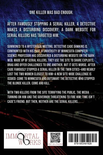 One killer was bad enough. After famously stopping a serial killer, a detective makes a disturbing discovery: a dark website for serial killers has targeted him. Summoned to a mysterious meeting, detective Cade Dawkins is confronted with his past. A University of Minnesota computer science professor has discovered a disturbing website on the dark web. Made up of serial killers, they use the site to share exploits, brag and offer challenges to one another. But it gets worse. After Cade famously stopped a serial killer in the Twin Cities-and nearly lost the two women closest to him-a new site-wide challenge is issued: Come to Minnesota and outsmart the detective who stopped the Blonde Killer. Come and kill. With two killers from the site terrifying the public, the media turning on him and the governor threatening to fire him, time isn't Cade's friend. But then, neither are the serial killers.