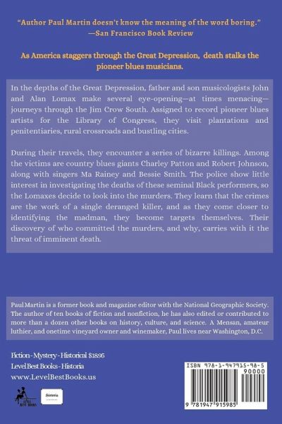 As America staggers through the Great Depression, death stalks the pioneer blues musicians. In the depths of the Great Depression, father and son musicologists John and Alan Lomax make several eye-opening-at times menacing-journeys through the Jim Crow South. Assigned to record pioneer blues artists for the Library of Congress, they visit plantations and penitentiaries, rural crossroads and bustling cities. During their travels, they encounter a series of bizarre killings. Among the victims are country blues giants Charley Patton and Robert Johnson, along with leading female singers Ma Rainey and Bessie Smith. The police show little interest in investigating the deaths of these seminal black performers, so the Lomaxes decide to look into the murders. They learn that the crimes are the work of a single deranged killer, and as they come closer to identifying the madman, they become targets themselves. Their discovery of who committed the murders, and why, carries with it the threat of imminent death.