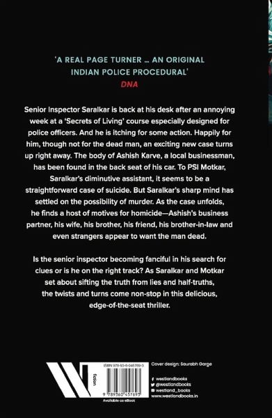 About the Book AN EDGE-OF-THE-SEAT POLICE PROCEDURAL BY ONE OF THE MOST EXCEPTIONAL CRIME WRITERS IN INDIA: SALIL DESAI Pune Homicide Unit's maverick cop Senior Inspector Saralkar is back at his desk after spending a rather annoying week at a 'Secrets of Living' course, held especially for police officers, and is itching for some action. Luckily for him, an exciting new case turns up right away. The body of Ashish Karve, a local businessman, has been found in the back seat of his car, with his wrists slit. To PSI Motkar, Saralkar's diminutive assistant, it seems to be a straightforward case of suicide. But Saralkar's sharp mind is agog with the dark possibility of murder. As the case unfolds, Saralkar finds suspects and motives emerging thick and fast-Ashish's business partner, his wife, his brother, his friend, his brother-in-law and even a stranger. Then Ashish's pretty colleague, Suchitra, is strangled to death. As they struggle to sift the truth from lies and half-truths, will Saralkar and Motkar be able to prevent the third murder? About the Author Salil Desai is an author, columnist and film-maker based in Pune. His masterful crime novels have earned him the reputation of being one of the sharpest crime writers in India.