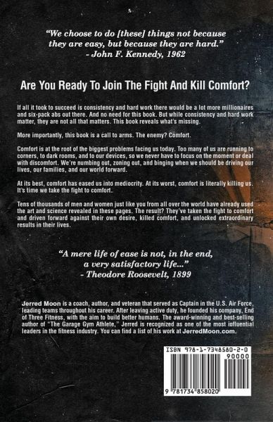 This book is not a fairytale or a story for your entertainment. This book is for those ready to roll up their sleeves and put in the work. With over a dozen different exercises and processes, this book is a tactical approach to living your best (uncomfortable) life. We all know that working hard or getting out of our comfort zone is beneficial. But why do some work hard and still end up with marginal results? If all it takes to truly succeed is consistency and hard work there would be a lot more millionaires and six-pack abs out there. While consistency and hard work are big pieces of the puzzle, they are not the only pieces. So, that's where this book comes in. The concept of doing hard things is not new. But, knowing what hard things to pursue seems to be the real challenge, or what I call the intentional pursuit of discomfort. The intentional pursuit of discomfort is not the same thing as simply putting yourself in uncomfortable situations. It's putting yourself in the right uncomfortable situations for exponential growth. It all starts with the simple idea of killing comfort. At its best, comfort has eased you into mediocrity. At its worst, comfort is literally killing you. It's time we take the fight to comfort. The pages in this book tell the stories of men and women who were just like you. Men and women who struggled with all that life demands, but found a way to push forward, albeit uncomfortably. We will also look to poetry and films, ancient texts, and a massive amount of scientific research. I'll weave in my own stories and experiences as well as data from tens of thousands of people who have utilized the services of my company, End of Three Fitness, over the last decade. To kill comfort, we'll need to cover three domains: Avoiding the traps of comfort Alchemizing intentionally focused discomfort Implementing a process daily over decades Almost any action will lead to some results, but we are after extraordinary results. You know that is what you are after and it's what you deserve. That's why you're reading this. So, let's unlock what's been holding us back. Let's mark off the prerequisite that is overlooked by so many. Let's KILL COMFORT.