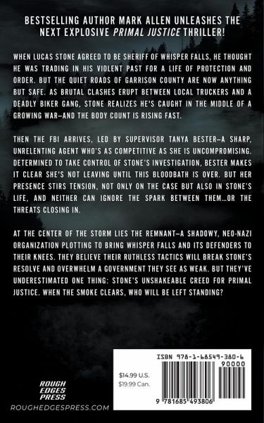 Lucas Stone, full-time sheriff, part-time preacher, and sometimes-vigilante, stumbles into a war between local truckers and a biker gang. The rural highways of Garrison County have become road-raging kill zones and the corpses are starting to stack up like cordwood. Pulling the strings is The Remnant, an army of neo-Nazi terrorists. When the feds get involved, Stone finds himself playing second fiddle to Tanya Bester, an FBI supervisor with a chip on her shoulder and a mile-wide competitive streak. Not content to just take over his investigation, Bester invades Stone's personal life as well. The battle between the truckers and bikers is just a warmup for a wider war. The Remnant is determined to make a lethal power play against a government they deem weak and corrupt. When Stone stands in their way, they set their crosshairs on Whisper Falls, targeting law dogs and laymen with impunity. The Remnant believe they are a ruthless, irresistible force. But they are about to slam against Stone's cold, immoveable belief in primal justice.