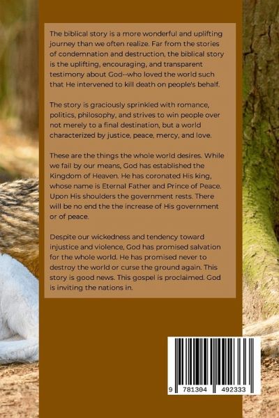 The biblical story is a more wonderful and uplifting journey than we often realize. Far from the stories of condemnation and destruction, the biblical story is the uplifting, encouraging, and transparent testimony about God--who loved the world such that He intervened to kill death on people's behalf. The story is graciously sprinkled with romance, politics, philosophy, and strives to win people over not merely to a final destination, but a world characterized by justice, peace, mercy, and love. These are the things the whole world desires. While we fail by our means, God has established the Kingdom of Heaven. He has coronated His king, whose name is Eternal Father and Prince of Peace. Upon His shoulders the government rests. There will be no end the the increase of His government or of peace. Despite our wickedness and tendency toward injustice and violence, God has promised salvation for the whole world. He has promised never to destroy the world or curse the ground again. This story is good news. This gospel is proclaimed. God is inviting the nations in.