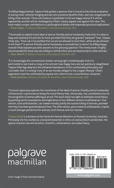"In Killing Happy Animals, Tatjana Visak probes a question that is crucial to the ethical evaluation of eating meat: whether bringing animals into existence benefits them, and can compensate for killing other animals. Those who believe it justifiable to kill one happy animal if it will be replaced by another will be challenged by Visak's clearly argued case against this view. This book makes a major contribution to a philosophical debate with important practical implications." - Peter Singer, Professor of Bioethics, Princeton University