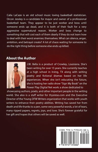 Calia LaCaze is an old school music loving basketball statistician. Orcon Jessley is a candidate for mayor and new owner of a professional basketball team. They appear to be just worker and boss until someone ends up dead, and it is both of their fault. Worker and boss change to something that will cost each of them dearly if they do not learn how to deal with each of their worst enemies: themselves. What can silence, anger, ambition, and betrayal create? A lot of chaos waiting for someone to do the right thing before someone else ends up killed.